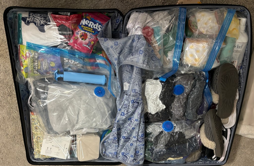 For the past 2 weeks my mom has shoved me into different shops personally sizing me into anything she can. If you know me, you know I am not a fan of shopping. I am a cheap skate at all costs and refuse to spend money unless I need to. An ideal shopping day to me would consist of gathering all the free samples I can find and browsing through clothes saying, “Oh this would be so cute” before walking away. This was in no way that type of shopping. Every store we left I gained a new bag. By the end of the day you would have thought I was Julia Roberts in Pretty Woman after Mr. Edward Lewis gave her his credit card. I had shopping bags acting as a new winter coat covering my arms. I also now know my size for any and everything you can think of thanks to all the workers my mom hired as my personal assistants. We have finished 90% of packing. I was told I could only bring 1 suitcase to fit my year’s worth of items in. Thank goodness for vacuum seal bags because I have no clue what we would do without them. Now that clothes are finally checked off. The fun part of packing has begun, junky American snacks, only my mom seems to stress about them fitting even more than the clothes. I’d say if it were up to me there would be nothing in my suitcase other than Sour Punch Straw Bites and Ms. Vickies Spicy Dill Pickle Chips. I went to Target to grab all the food items I wanted my hosts family to try: barbecue sauce, peanut butter, chick fil a sauce, ranch, salsa, pickles, candy, etc. You know the necessities. I can proudly say my clothes and food will share 50/50 storage space.