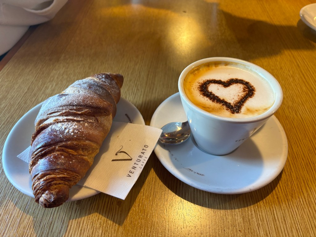After school on Saturday I went to lunch with 3 girls from my class. We got pizza portafoglio’s for lunch. Translated from Italian, it means “wallet pizza” as it’s a pizza folded into what looks like a wallet. I got one with Mortadella, pistachio, and burrata cheese. This has quickly become one of my favorite combinations. We walked around town a little then went to get gelato at the so-called best spot in town: Romana. I can confirm it lived up to its name. I ordered for myself in Italian successfully choosing both: mango stracciatella and matcha in a Coppetta piccolo. It was nice to hangout with people outside of school and get to know them more. I mean how often can you say that you went to get gelato after school in Italy? On Wednesday another girl from my class is going to show me all of her favorite places around the city-center, and a couple others have asked to have lunch with me, too. I seriously have the best class everyone has made such an effort to get to know me.