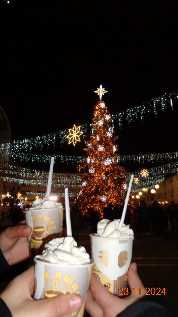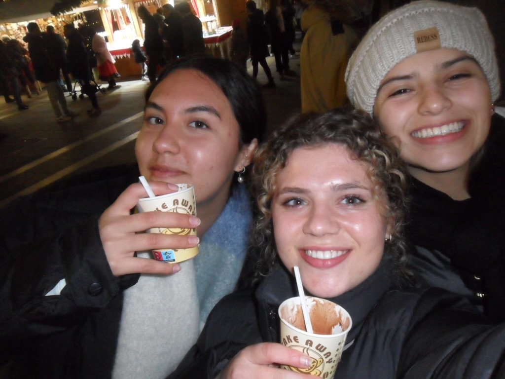 After the event came to an end, we all exchanged numbers, buzzing with excitement as we started planning another meetup in Venice for the Christmas markets. Bella, Mercedes, and I—the other exchange students—weren’t ready to call it a day, so we set off to explore more of the city together. We wandered through the festive markets, soaking in the holiday spirit, visiting Santa, and warming up with rich, creamy hot chocolate. When hunger struck, we found the perfect spot for dinner: a cozy little ramen restaurant. I ordered a spicy broth with hand-pulled noodles and beef—it was so flavorful, I’m convinced it was some of the best ramen I’ve ever had. I love spending time with other exchange students; it’s always inspiring to hear their unique experiences and perspectives, knowing we’re all navigating this journey in our own ways. Before heading back to the train station, we took one last walk through the markets, savoring every moment. It was such a fun day, packed with laughter, delicious food, and loads of holiday magic.